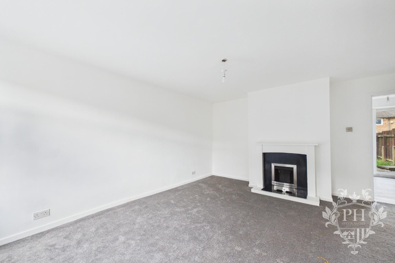 The reception room is generously sized, comfortably fitting a three-piece suite with plenty of space left for extra storage units. A striking fire surround, complete with a functional fire, creates a cozy focal point at the heart of the room. Natural light pours in through a large UPVC double glazed window, making the space feel bright and inviting throughout the day. The room is kept warm by a modern radiator, while the soft, brand new grey carpet underfoot adds a touch of modern elegance. Freshly painted white walls enhance the airy atmosphere, and there is direct access from the reception room into the kitchen diner, making it perfect for both everyday living and entertaining.