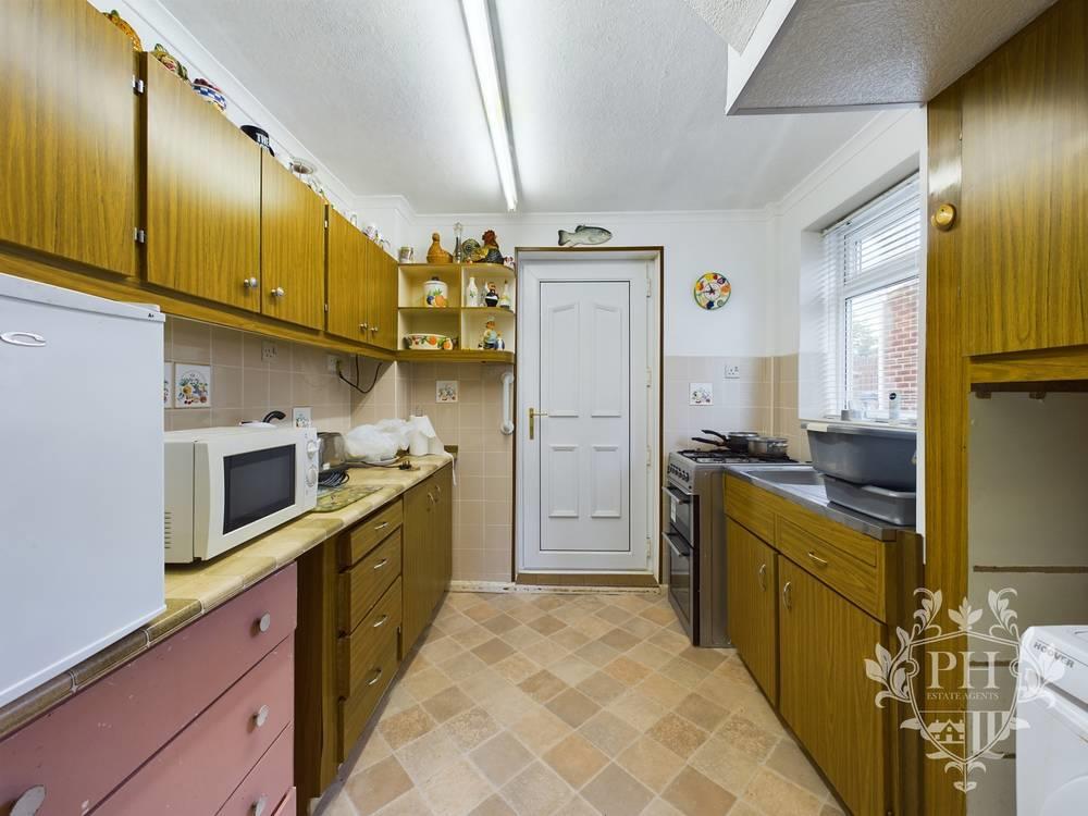 The kitchen is in need of modernization but has endless potential, with doors leading to the rear entrance & hallway. The kitchen currently has a number of wall and floor units for storage with a stainless steel sink and space for a washing machine, free standing gas and fridge freezer.