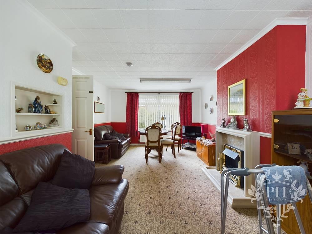 The spacious reception room is bright and benefits from a large UPVC double glazed window with a double radiator for warmth. This attractive room provides the perfect amount of space for a three piece suite and storage units making it a fantastic room to spend time with your family. To the rear of the room is a dining area with the second UPVC double glazed window which looks onto the exceptionally sized rear garden.