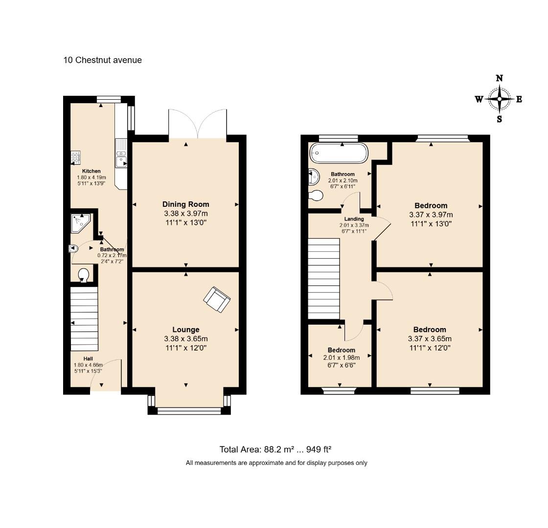 3.58m x 3.94m (11'9" x 12'11")