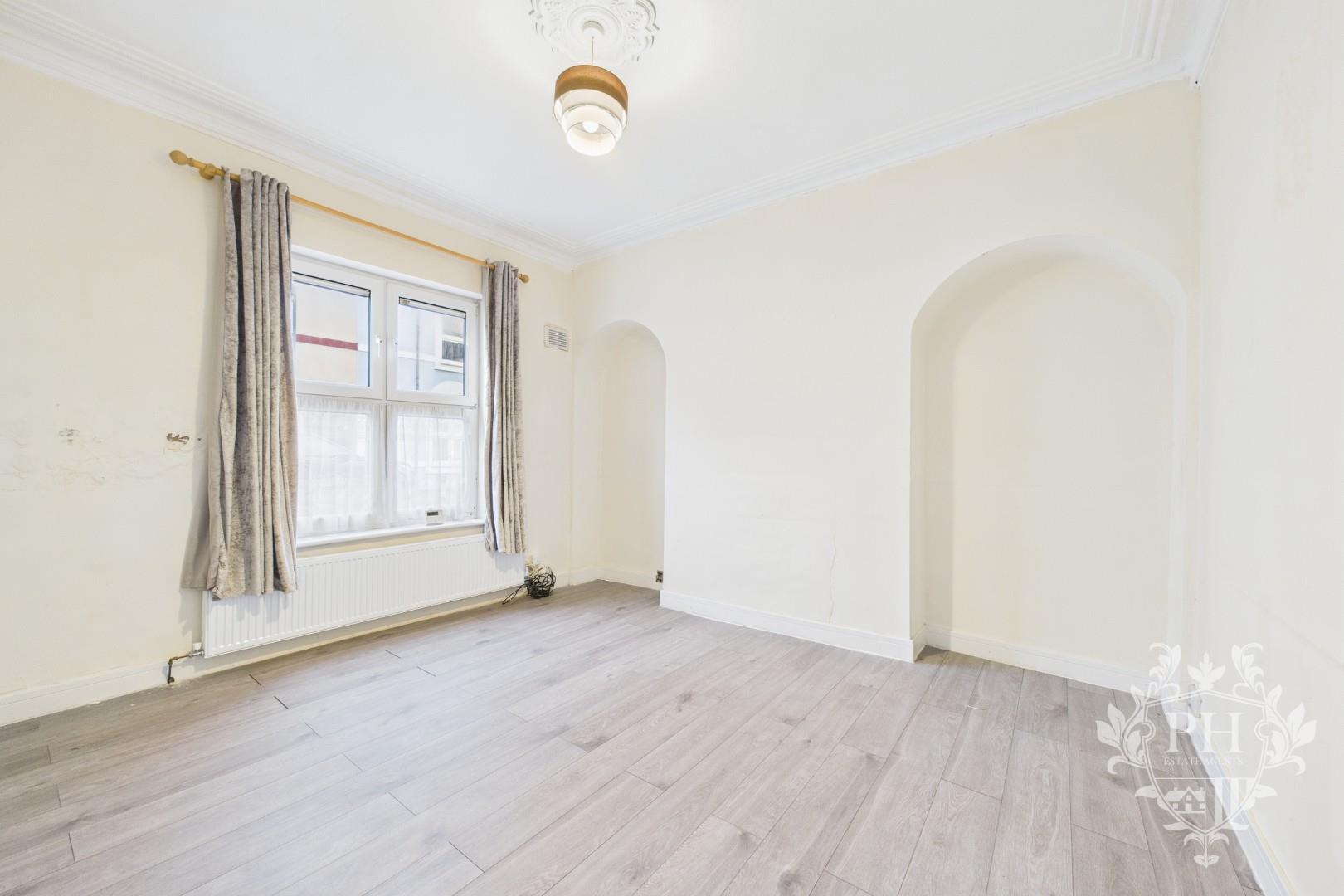 The reception room is positioned at the front of the property, welcoming in plenty of natural light through its UPVC double glazed window. There’s ample space here for a comfortable two-piece suite, with plenty of room left over for extra storage units or shelving. A radiator adds warmth, while the modern laminate flooring brings both style and practicality to the space, making it an inviting spot to relax or entertain guests.