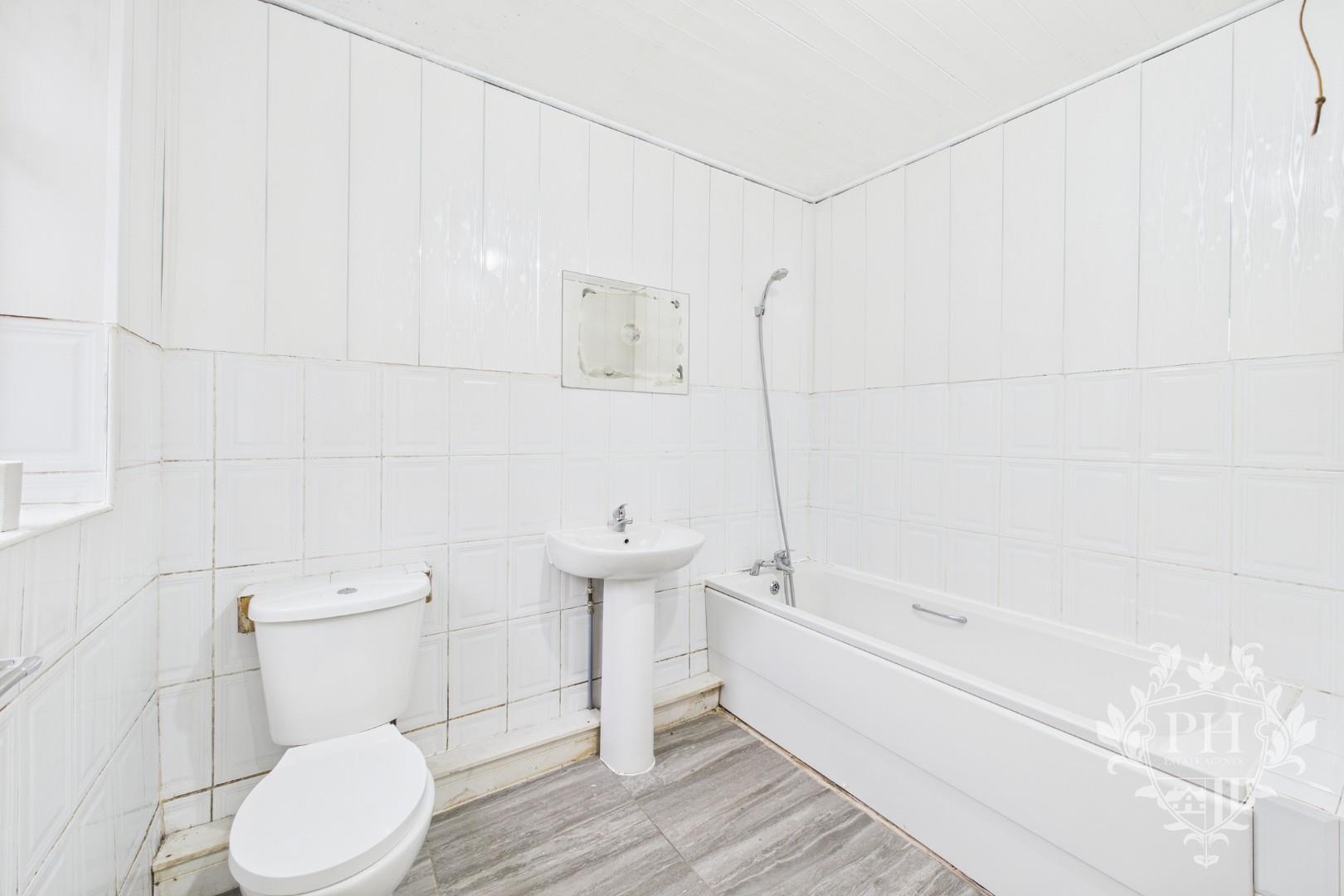 The bathroom features a three piece white suite! this includes toilet, basin and bath, the room is bright and has white wall cladding & tiles with brand new grey flooring to compliment with a UPVC double glazed window to the side aspect of the yard.