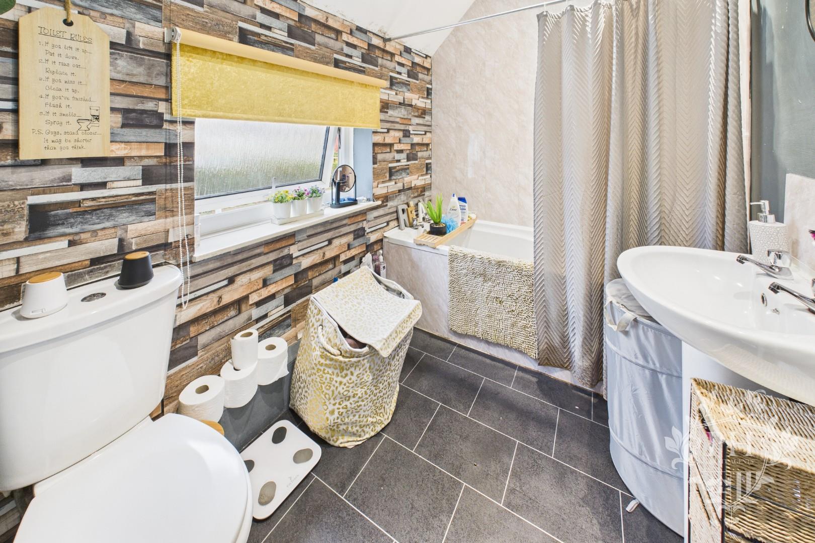 The third bedroom is positioned at the front of the house, where natural light pours in through a large UPVC double glazed window. Spacious enough to accommodate a double bed with room to spare, it easily fits larger wardrobes or storage units without feeling cramped. A radiator beneath the window keeps the room warm and inviting throughout the colder months.