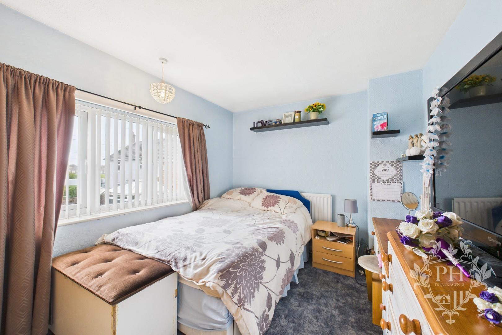 The third bedroom sits at the front of the house, its unique L-shaped layout offering a bit of extra character. There’s plenty of space for a single bed, along with additional storage—think a wardrobe, shelves, or a chest of drawers—without the room ever feeling cramped. Natural light streams in through a large UPVC double glazed window, and a radiator ensures it stays warm and comfortable year-round.