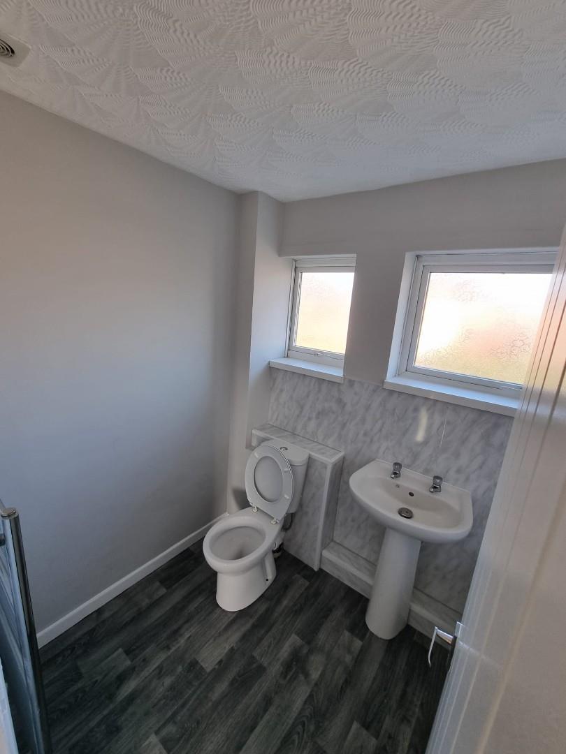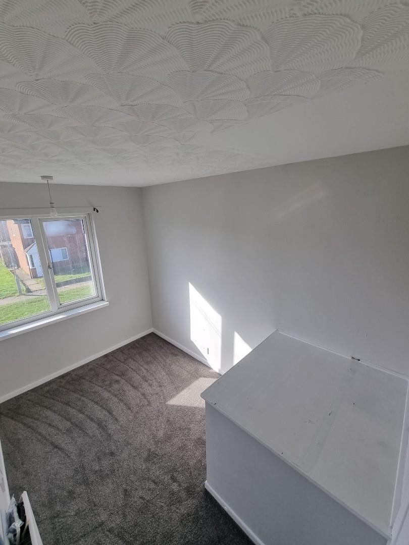 The third bedroom sits at the front of the house, catching the morning light through a UPVC double glazed window. There’s just enough room for a single bed, and while storage options are limited, the space feels tidy and inviting. A new grey carpet stretches wall to wall, softening footsteps and adding a modern touch, and a radiator keeps the room cozy year-round.