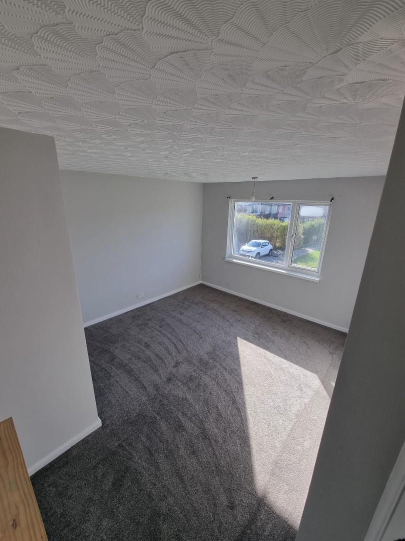 The first bedroom is positioned at the front of the house, where sunlight filters in through a large UPVC double-glazed window, casting a soft glow across the room. There’s plenty of space for a double bed, with ample room left over for sizeable wardrobes or chests of drawers. Underfoot, a plush new grey carpet adds warmth and comfort, while a modern radiator ensures the space stays cozy year-round.