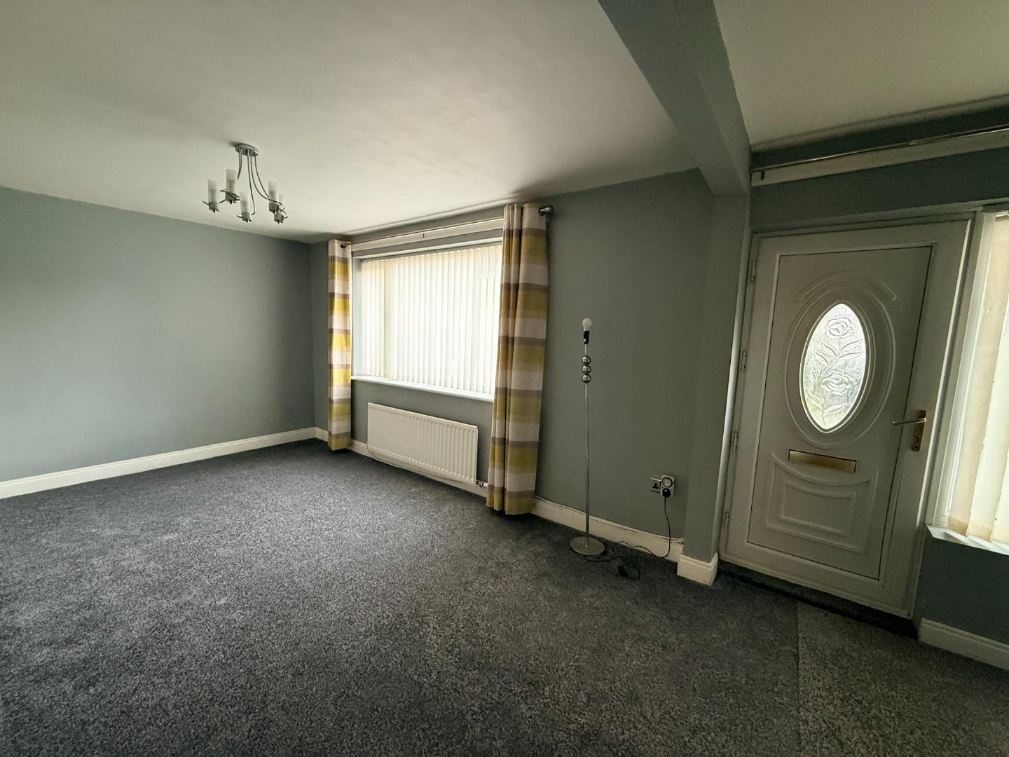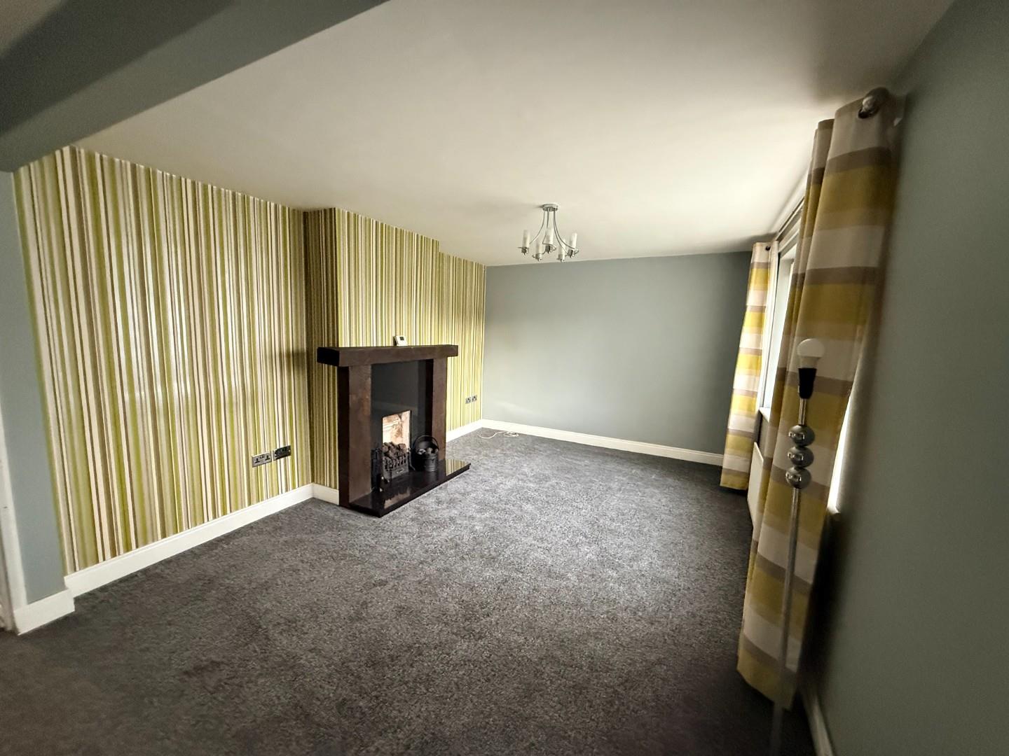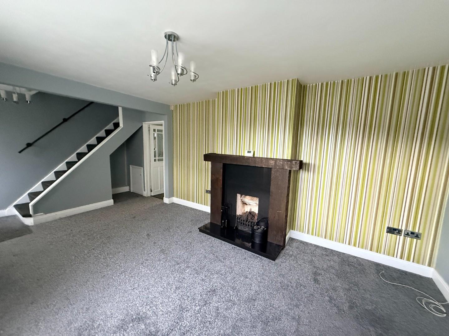 Walking in from the front garden, you step through a pristine white UPVC double-glazed door and into a spacious reception room. The area opens up comfortably, easily accommodating a two-piece suite along with additional storage units while still feeling airy and uncluttered. A stylish fire surround with an integrated fire creates a welcoming focal point, complemented by a UPVC double-glazed window that draws in natural light. The room is warmed by a well-placed radiator and offers convenient access to the kitchen, the first-floor staircase, and a useful understairs storage cupboard.