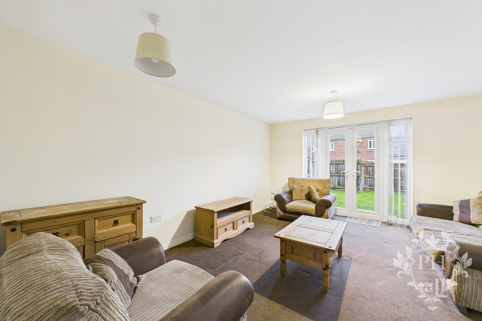 The reception room is positioned to the rear of the property and offers generous space to comfortably accommodate a three-piece suite along with additional storage units. The room is well appointed with a fitted radiator and a useful understairs storage cupboard. UPVC double-glazed French doors open directly onto the garden, allowing plenty of natural light to fill the space and providing seamless indoor-outdoor access.