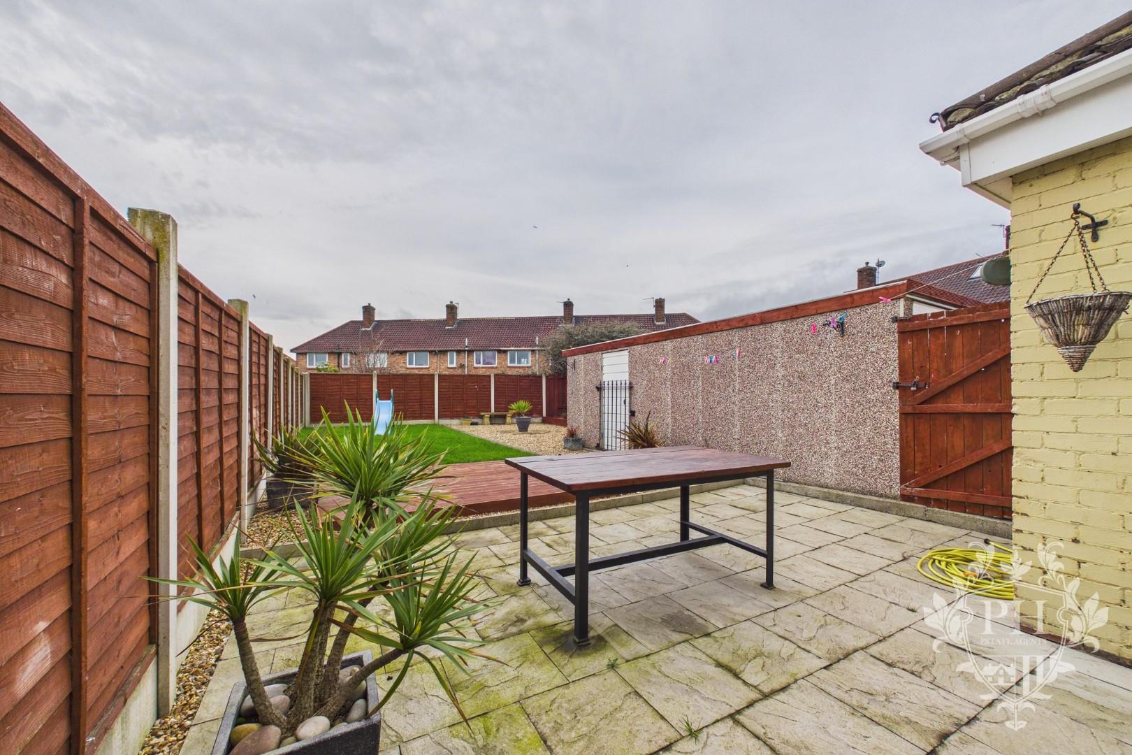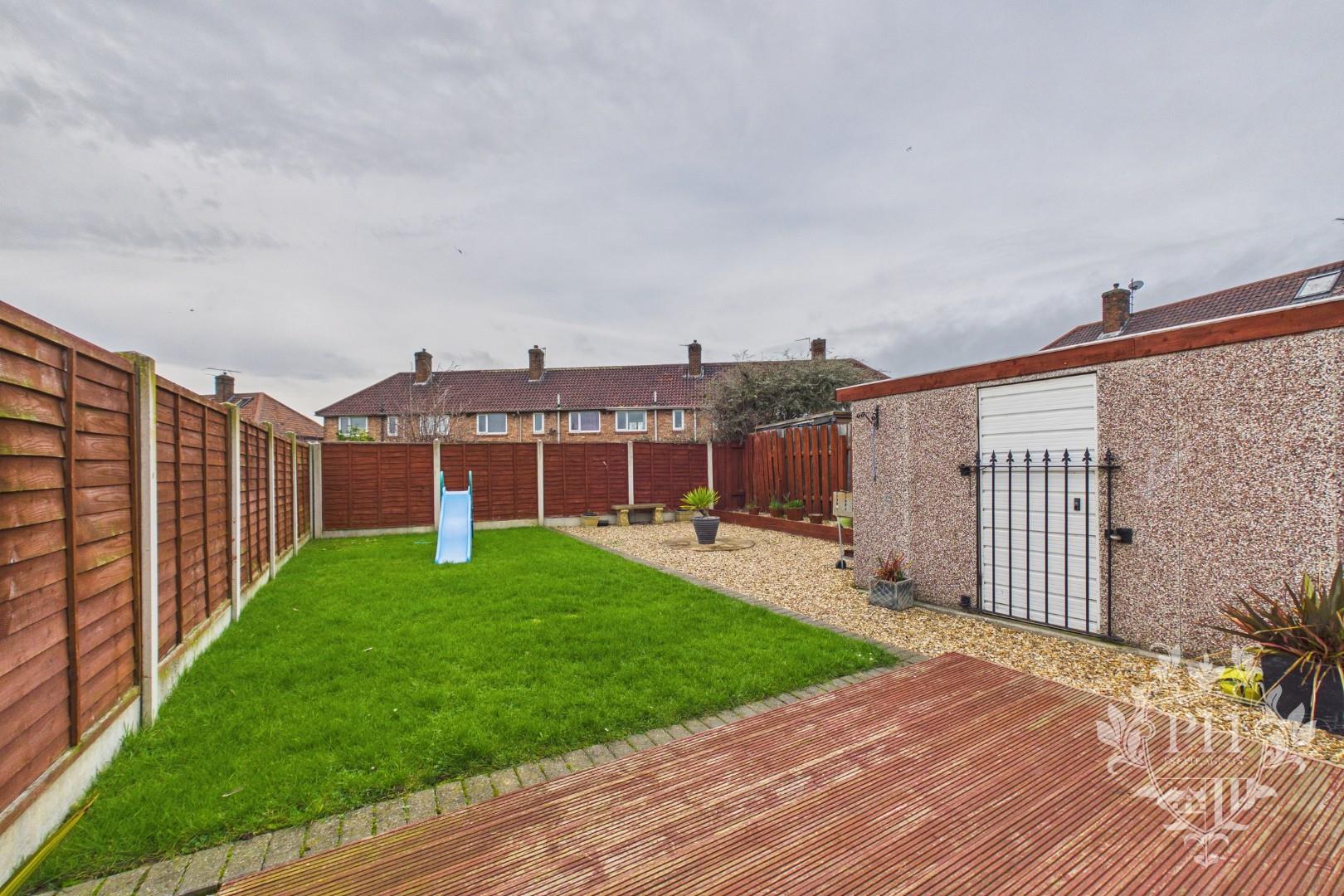 At the front of the property, you'll find a tidy, low-maintenance garden bordered by a classic brick wall, creating a welcoming first impression and offering a sense of privacy. A pathway guides you down to the attached garage, making parking and storage convenient. Step out back and you’ll discover a spacious outdoor area that’s perfect for relaxing or entertaining. The rear garden features a paved patio ideal for outdoor dining, a raised decked section for lounging, and a lush green lawn—all neatly enclosed by sturdy fencing. The home is conveniently located just a short drive from a range of local shops, amenities, and well-regarded schools, making daily errands and school runs a breeze.