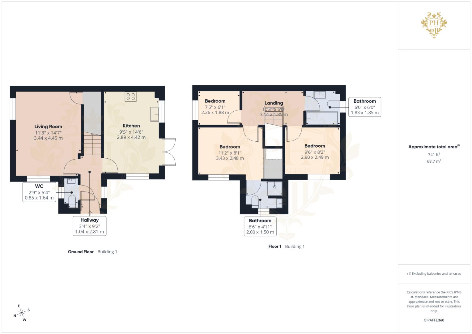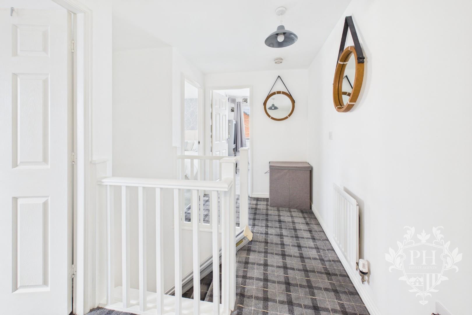 The landing features a fresh grey tartan carpet that adds both warmth and character to the space, set off by crisp white walls. From here, you can reach all three bedrooms as well as the family bathroom.