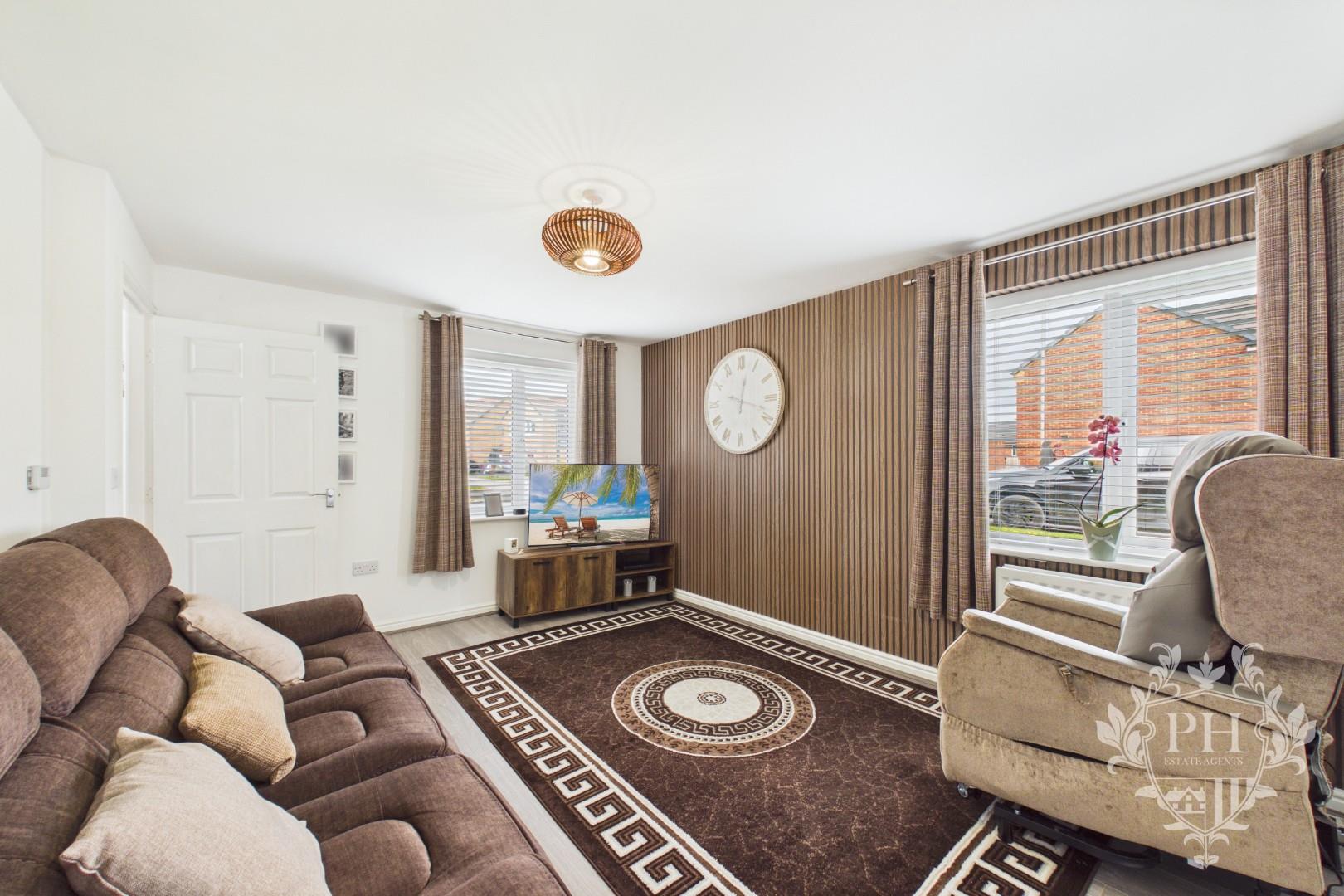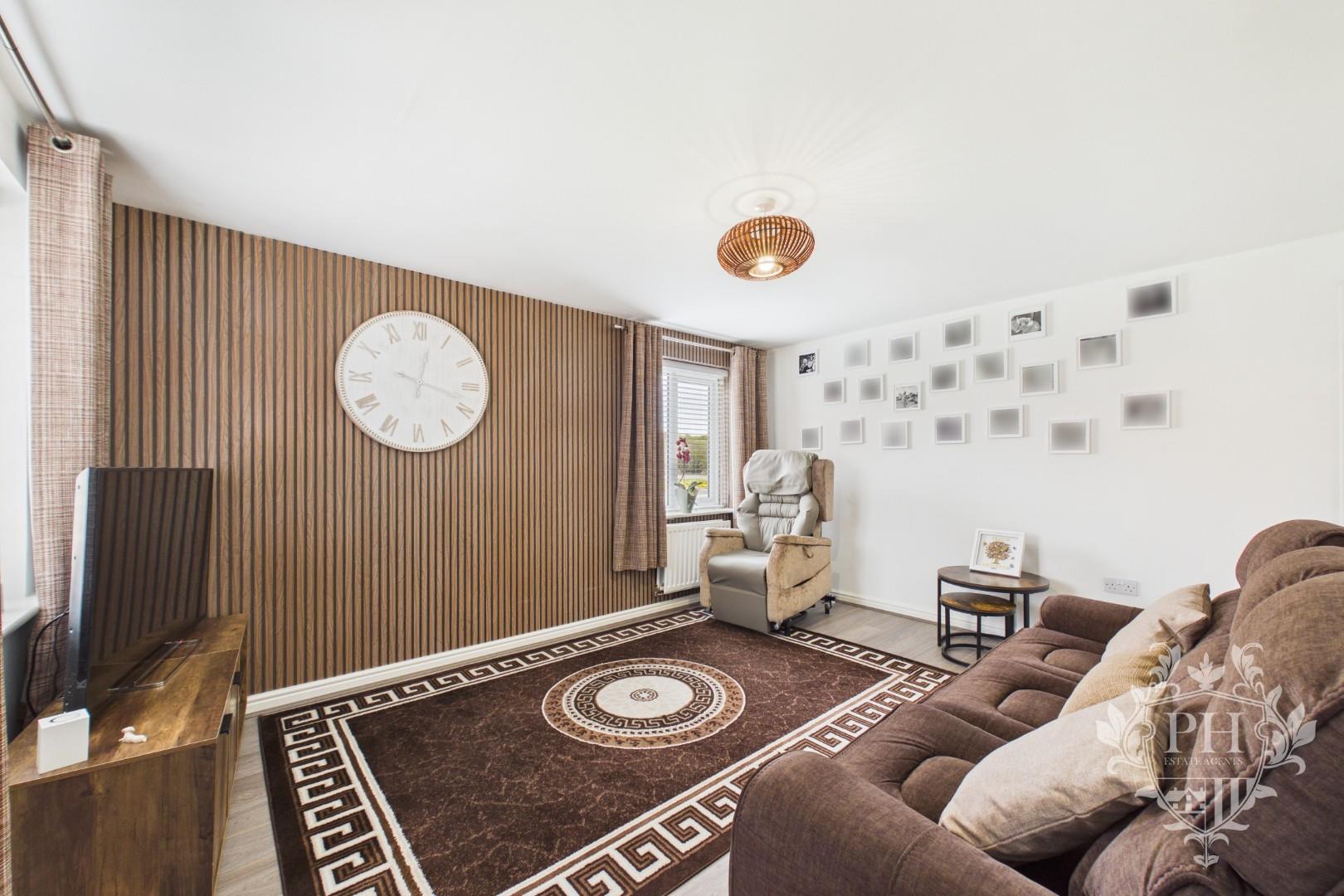 The reception room sits at the front of the house, welcoming sunlight through two large UPVC double-glazed windows—one framing the side view, the other looking out across the front garden. Generously sized, the room easily fits a full three-piece suite with space left over for extra storage units or display cabinets. A modern laminate floor stretches wall-to-wall, adding warmth and a contemporary touch, while an understair storage cupboard offers a discreet spot to tuck away coats, shoes, or anything else you want out of sight. The whole space feels open and inviting, perfect for relaxing or gathering with friends and family.