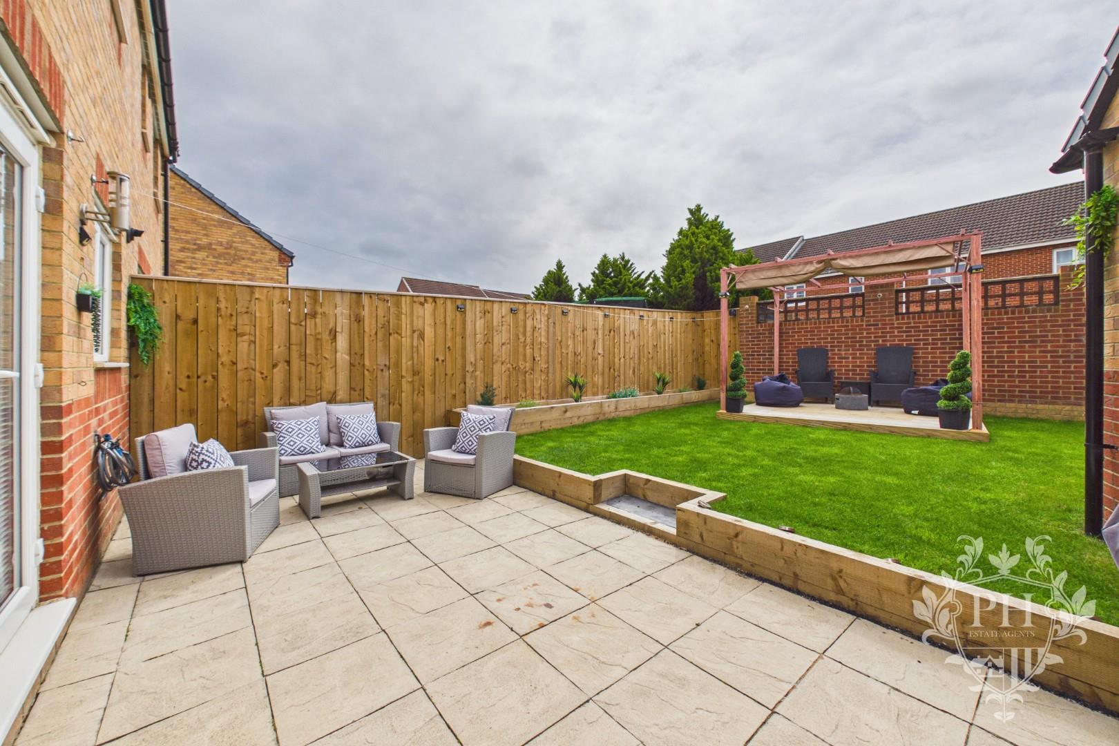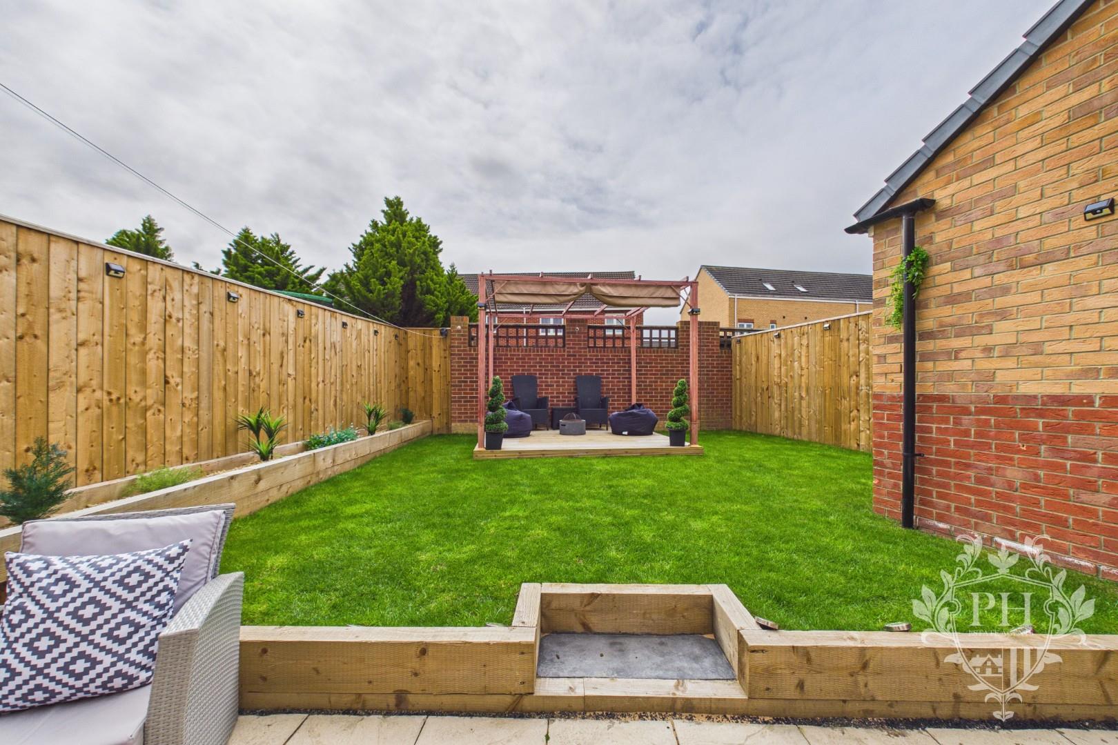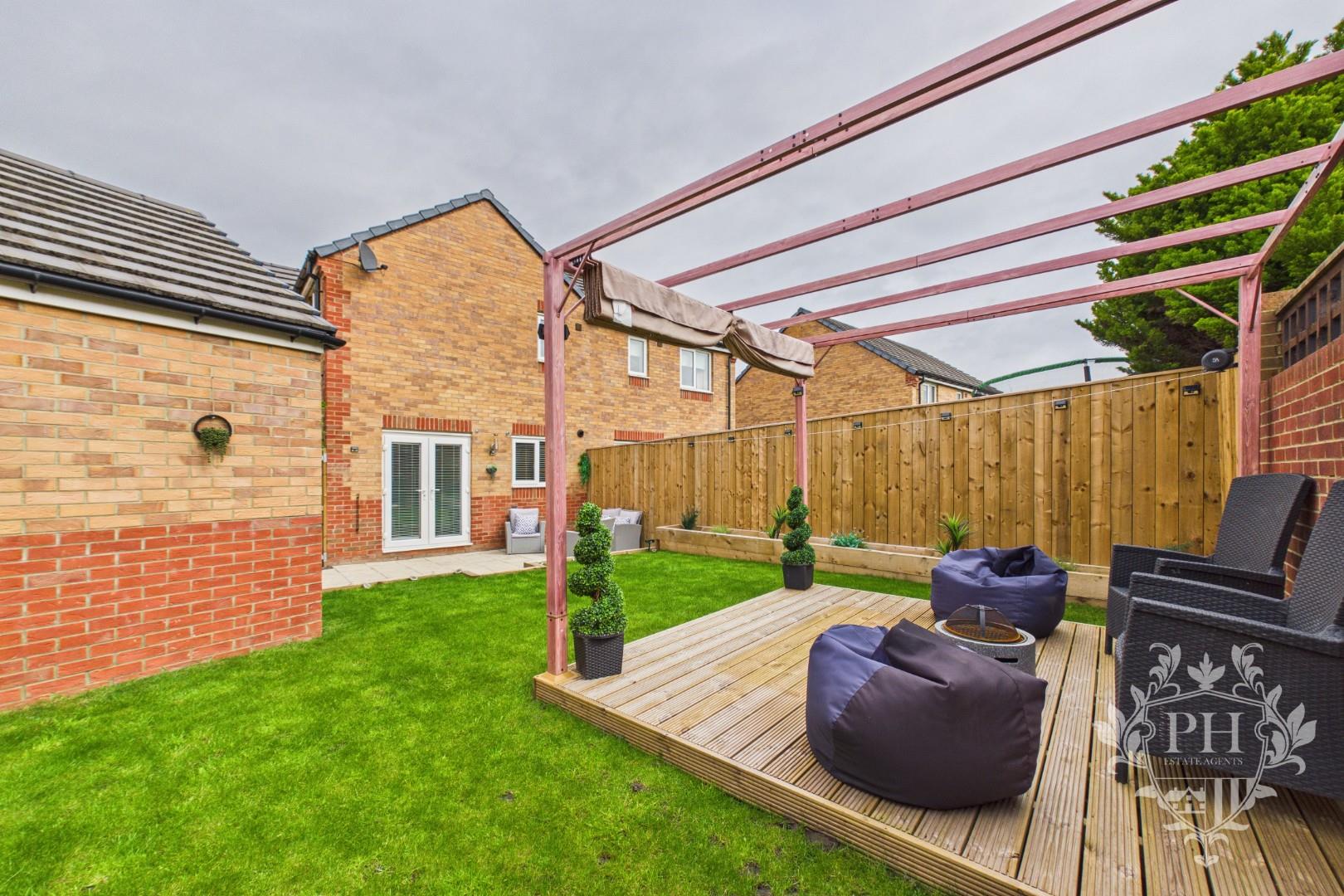 At the front of the property, you'll find an expansive lawn bordered by a generous driveway, leading up to a detached garage—perfect for vehicles or extra storage. Step out back and discover a modern, thoughtfully landscaped garden designed across two distinct levels. The lower tier features a welcoming patio, ideal for outdoor dining or relaxing evenings, while the upper level boasts a well-kept grassy area paired with a stylish decked section—just right for a second seating area or entertaining guests. Conveniently located, this home is only a short drive from both the A66 and A19, and within easy walking distance of local shops, amenities, and schools.