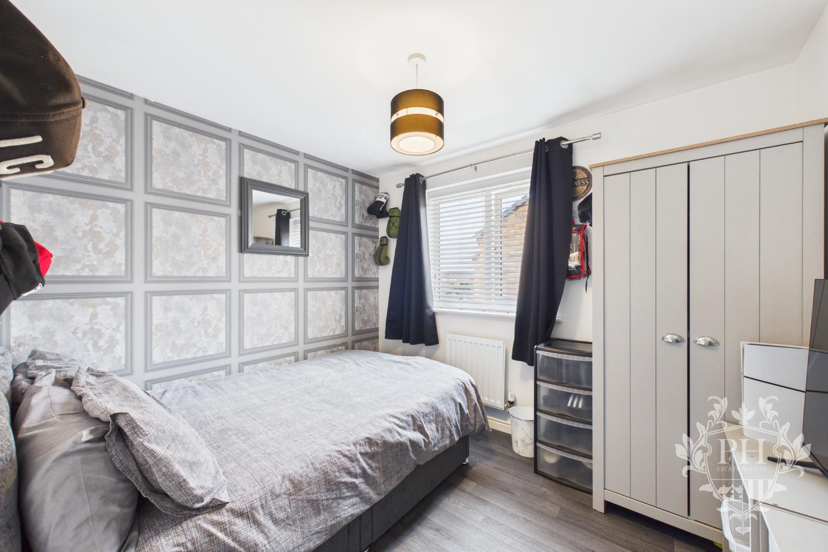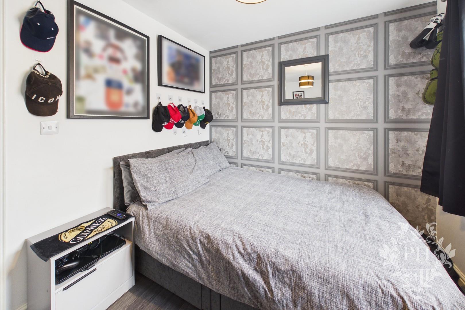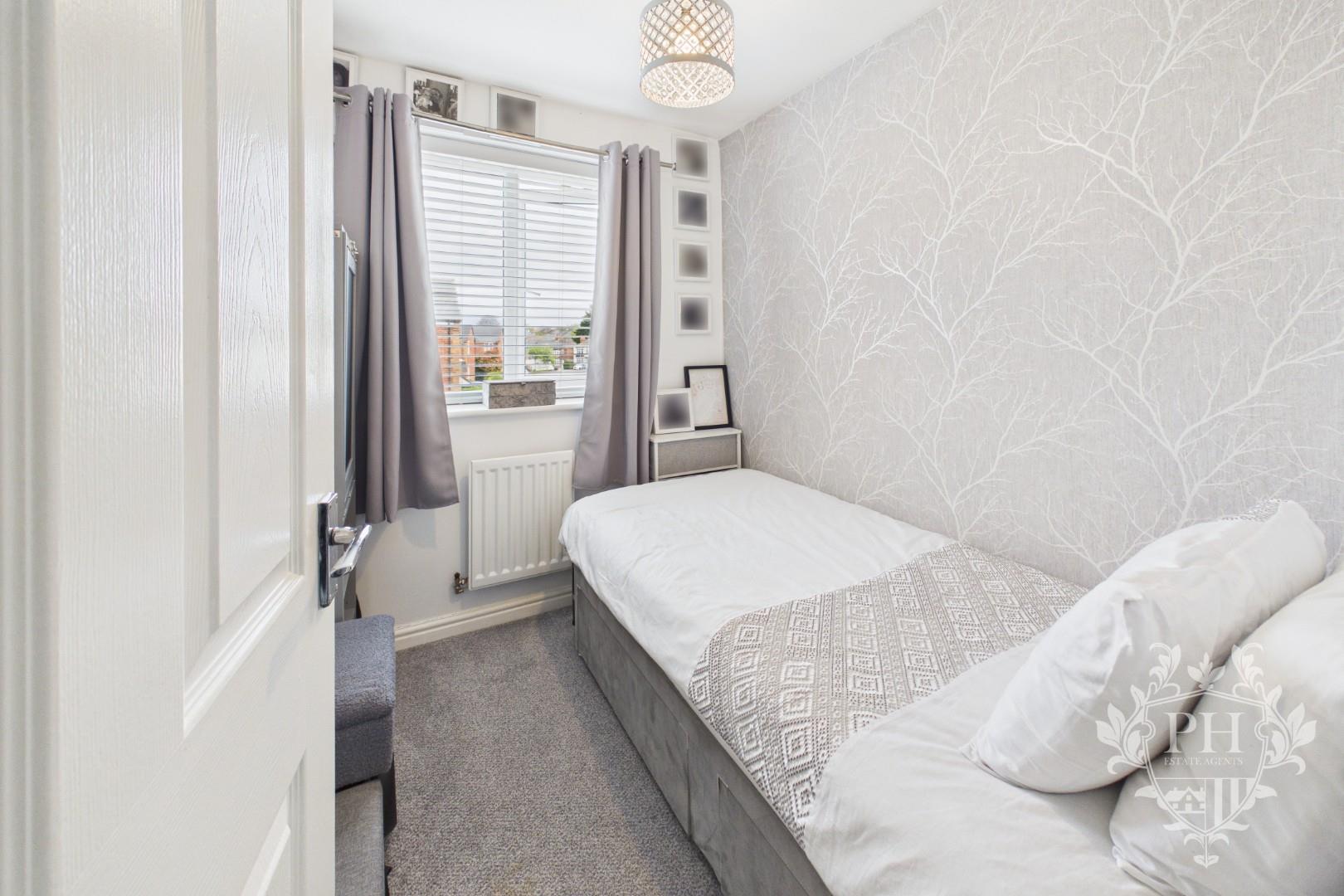 The third bedroom sits at the front of the house, catching the morning light through a wide UPVC double glazed window. While compact, the room is perfectly sized for a single bed and a few smaller storage pieces, making it an ideal space for a child, guest, or home office. A modern radiator keeps it cozy year-round, and the soft grey carpet underfoot adds a touch of warmth and comfort.