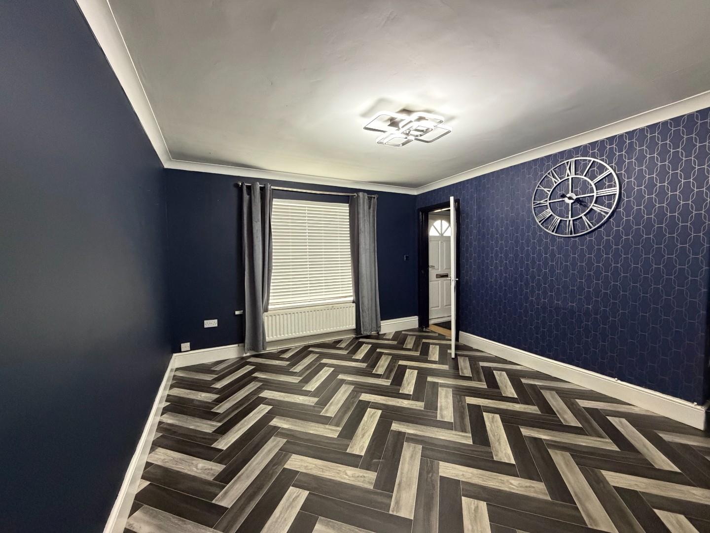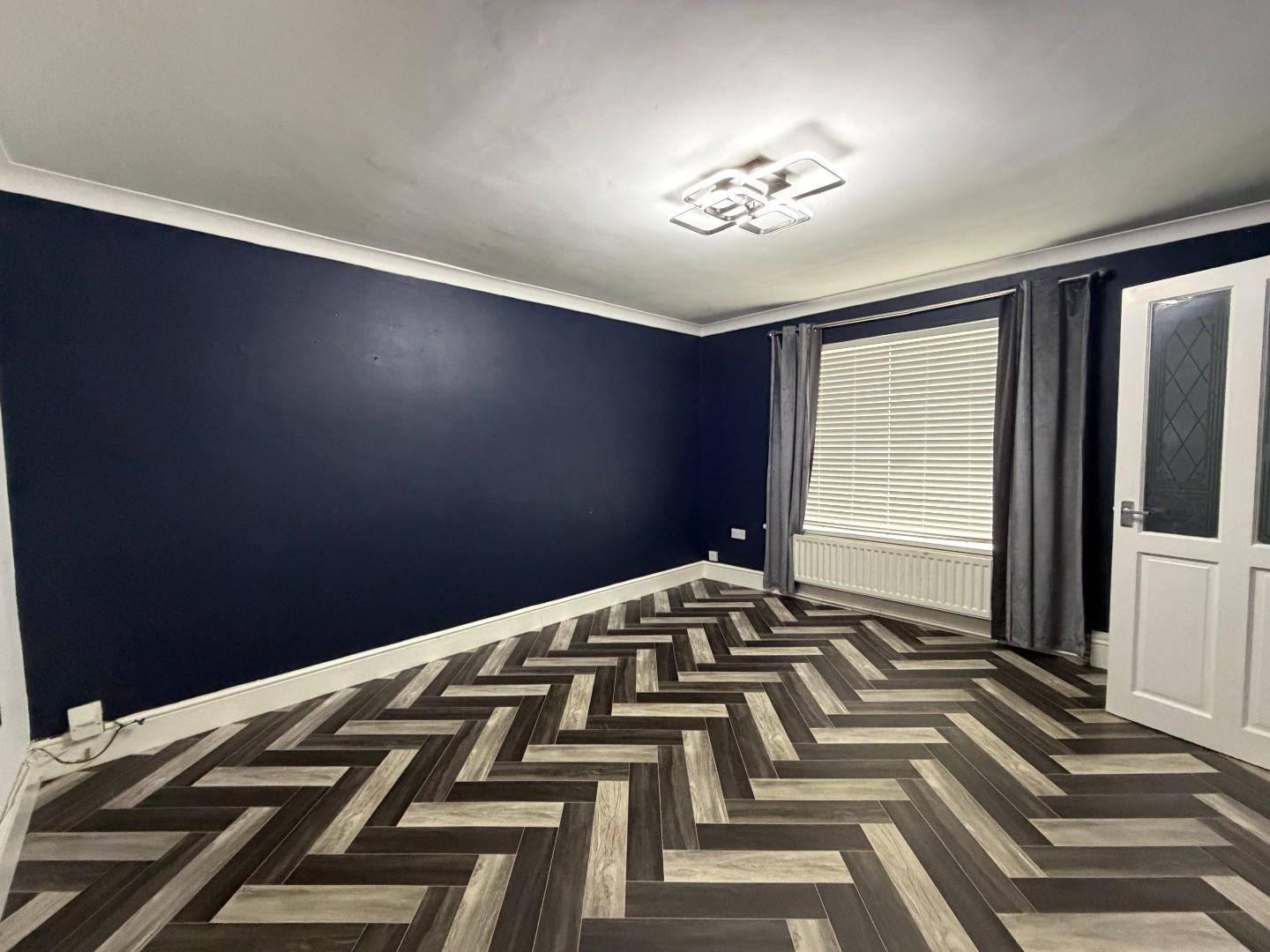 14' 1'' x 12' 0'' (4.29m x 3.65m) PVC double glazed window, fitted vertical blinds, central heated radiator, laminated timber flooring and timber glazed door to kitchen.