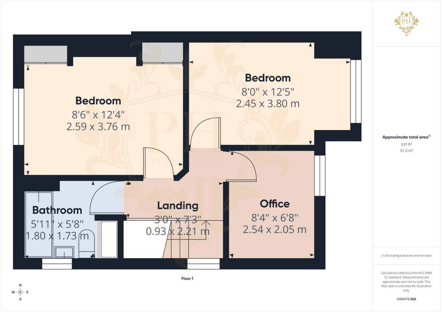 2.59m x 3.76m (8'6" x 12'4" )