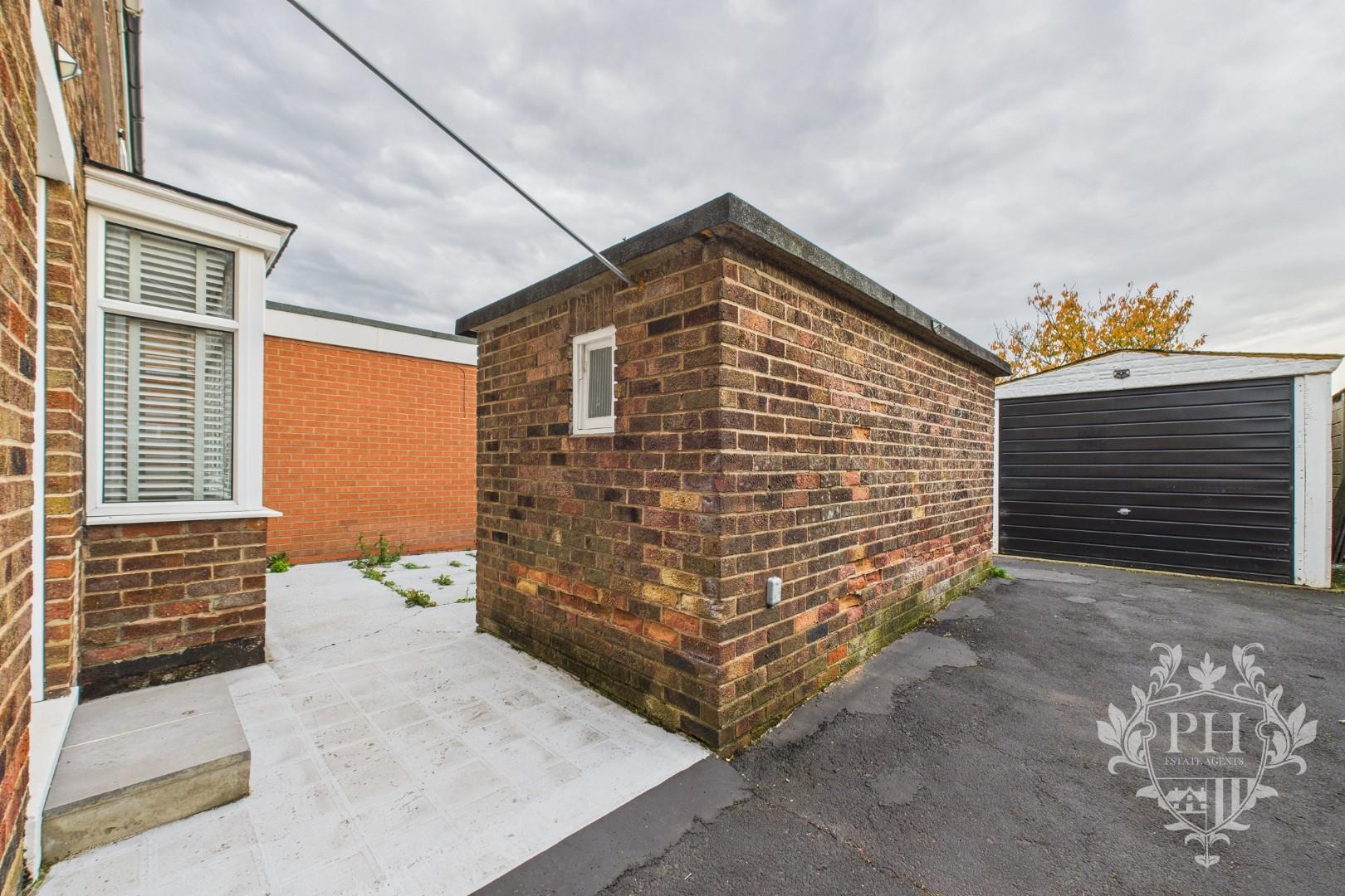 Behind a set of sturdy wooden gates at the back of the property, you'll find a private garage with space to park two or three cars comfortably, ensuring both security and convenience for residents. The expansive rear garden is fully enclosed with fencing, creating a spacious and safe environment that’s perfect for relaxing or entertaining outdoors. Located just a short walk from the hospital, nearby park, and a variety of local amenities, the property combines practical features with an ideal, accessible setting.