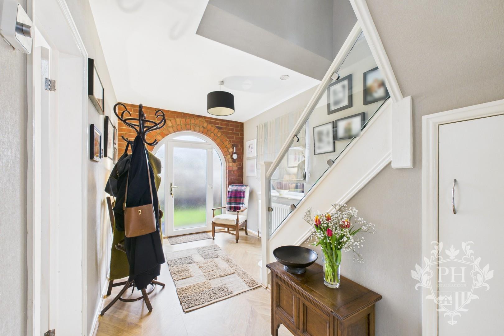 Entered via the front garden through a UPVC double-glazed door, the property opens into a bright and generously proportioned hallway providing access to the reception room, kitchen, and first floor. The hallway is enhanced by modern flooring, a fitted radiator, and a UPVC double-glazed window to the side aspect, allowing natural light to flood the space and creating a welcoming first impression.