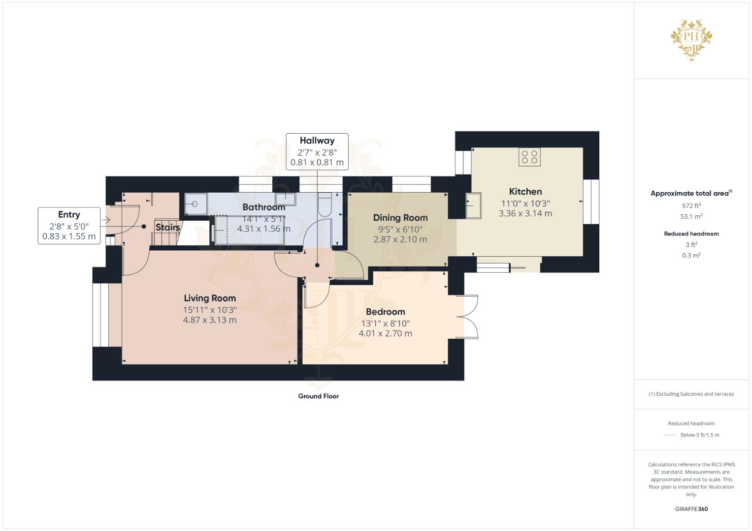 The central hallway gains access to the dining room, ground floor bedroom and ground floor bathroom.
