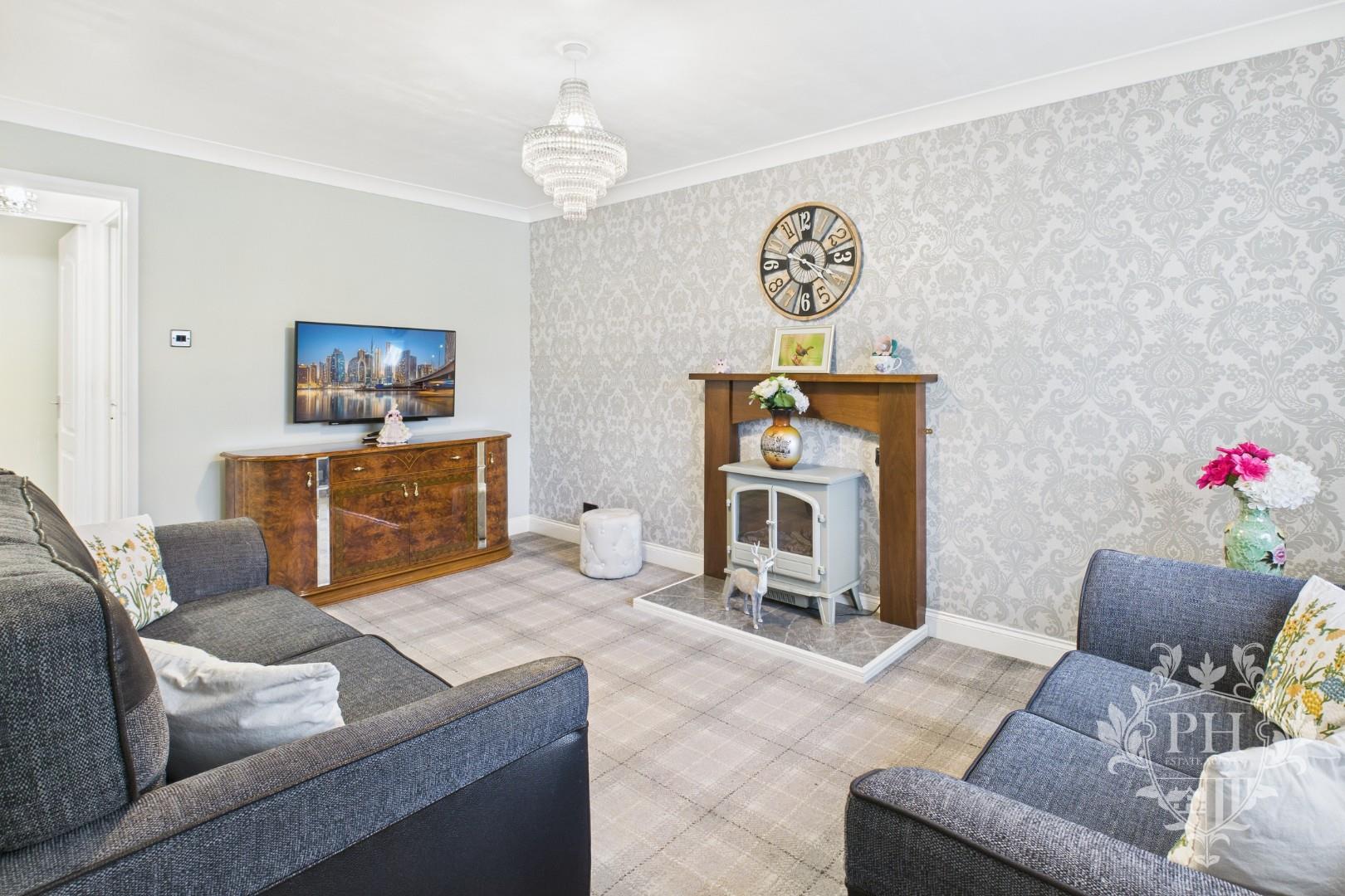 Positioned at the front of the house, the reception room welcomes you with a sense of space that easily accommodates a two-piece suite, along with extra storage units for added convenience. Natural light pours in through a large UPVC double-glazed window, brightening the room and highlighting the soft, plush carpet underfoot. A radiator keeps things cozy on colder days, while a classic fire surround with an electric fire adds a warm focal point to the space. From here, you can step directly into the central hallway, making the room feel well-connected to the rest of the home.