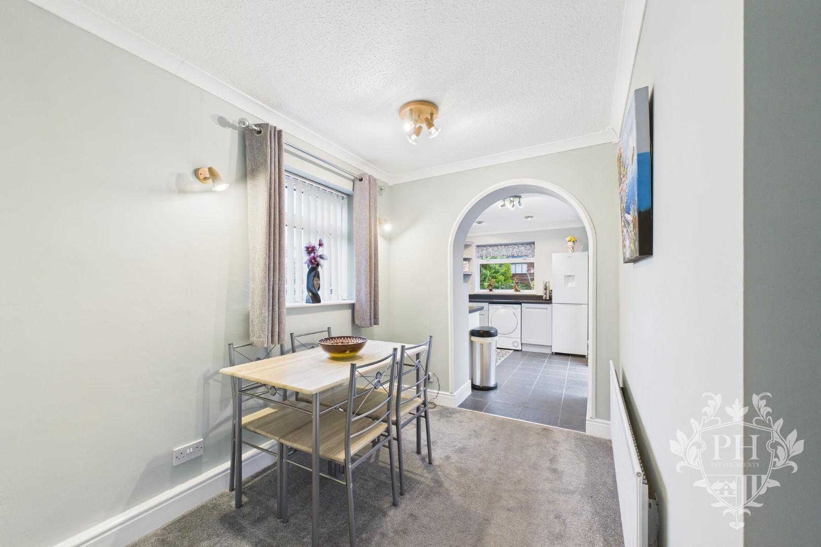 The dining room sits at the heart of the home, offering enough space for a cozy dining table where family or friends can gather for meals. Natural light pours in through a UPVC double-glazed window, while a radiator ensures the space stays warm and inviting. An open doorway leads directly into the kitchen, making it easy to serve food or entertain guests.
