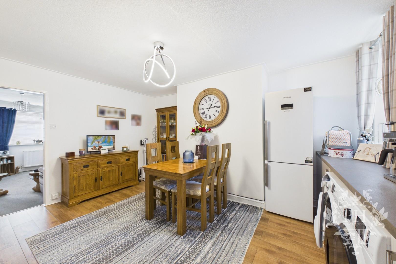 The reception room sits at the front of the property, welcoming you with a bright UPVC double glazed window that lets in plenty of natural light. There’s ample room for a comfortable two-piece suite, perfect for relaxing or entertaining guests, as well as space for extra storage units to keep everything tidy. A classic fire surround with a working fire creates a cozy focal point, while the soft carpet underfoot adds warmth and comfort. From here, you can step directly into the spacious dining area, making it easy to move from relaxation to dinner with friends or family.