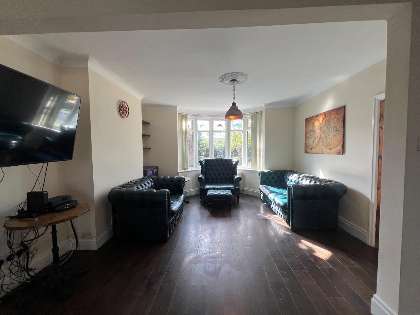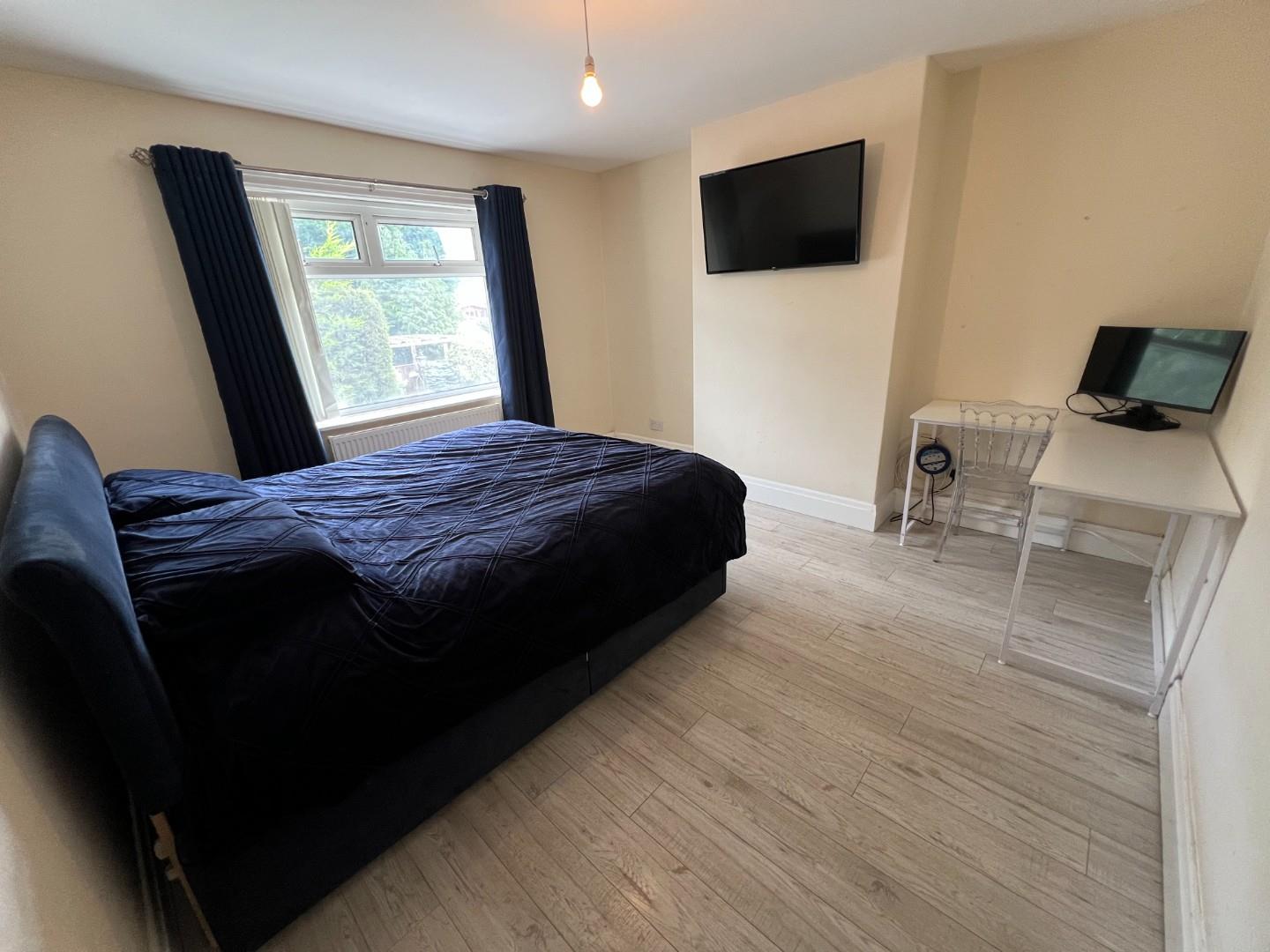 Positioned at the front of the property, the second bedroom is currently serving as a spacious walk-in wardrobe. This bright and versatile room easily fits a double bed alongside generous storage units, offering plenty of space for clothing and accessories. Natural light pours in through a large UPVC double-glazed window, while a modern radiator ensures year-round comfort. The room is finished with sleek laminate flooring that adds a touch of contemporary style.