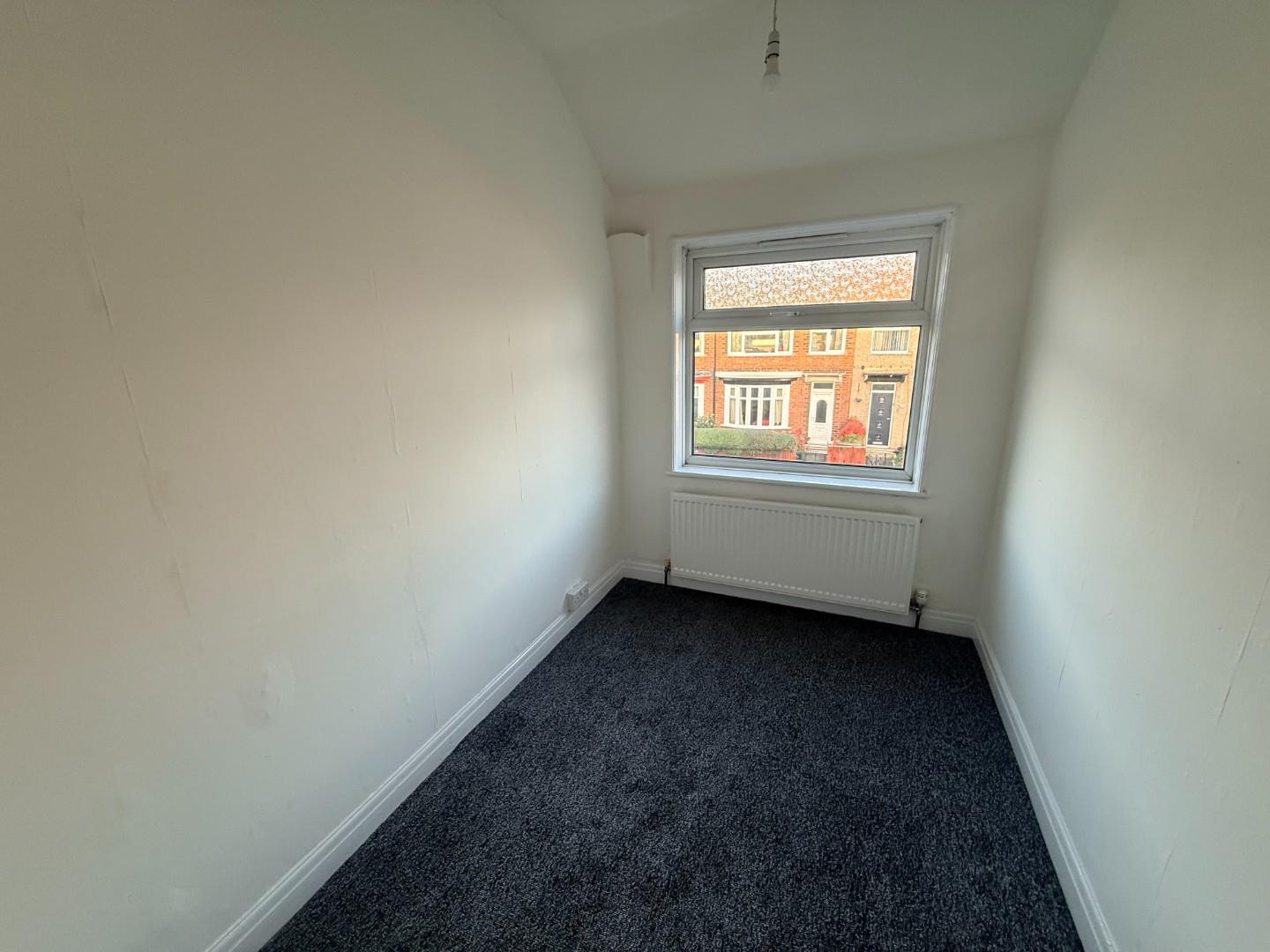 The third bedroom is located at the front of the house, with sunlight filtering in through a modern UPVC double-glazed window that frames the street outside. Inside, there’s comfortable space for a single bed and a few key storage pieces—think a compact wardrobe or a chest of drawers—making it ideal for a guest room or cozy study. The fresh grey carpeting underfoot gives the room a contemporary feel, while the radiator ensures it stays warm and inviting all year round.