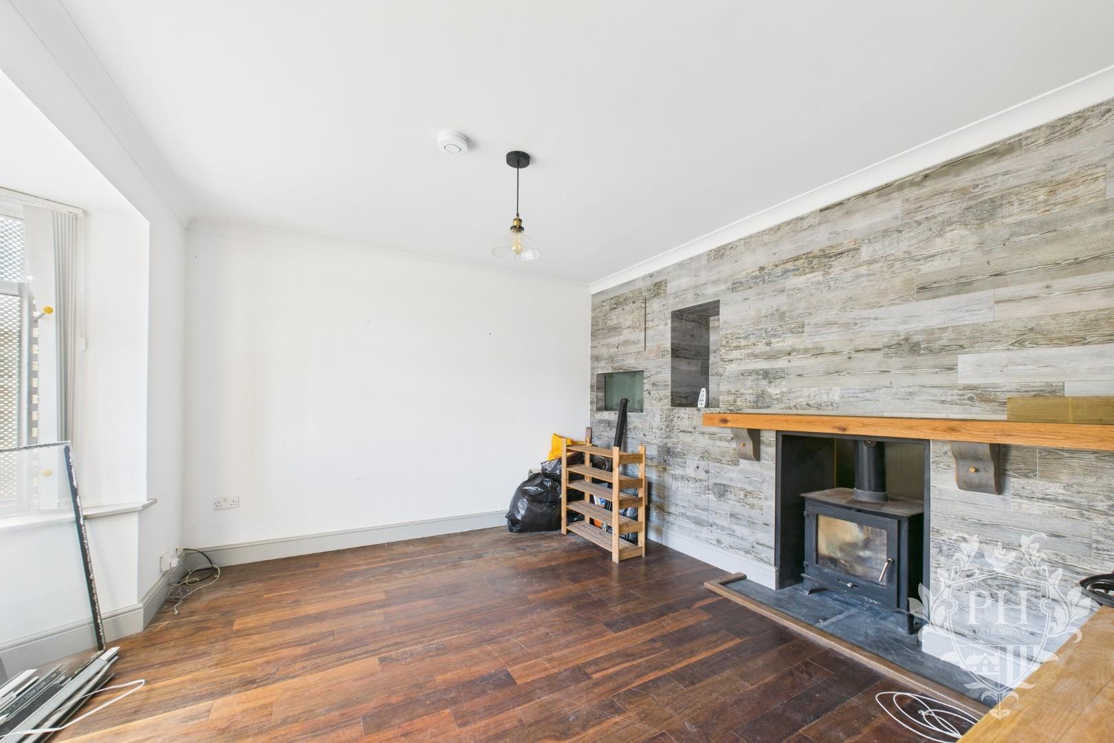 At the front of the property, the reception room welcomes you with generous proportions, offering ample space for a comfortable two-piece suite and cleverly integrated storage. A striking bay window floods the room with natural light, while a contemporary media wall adds both function and style. At the heart of the room, a charming log burner promises warmth and a cozy ambiance on cooler evenings.