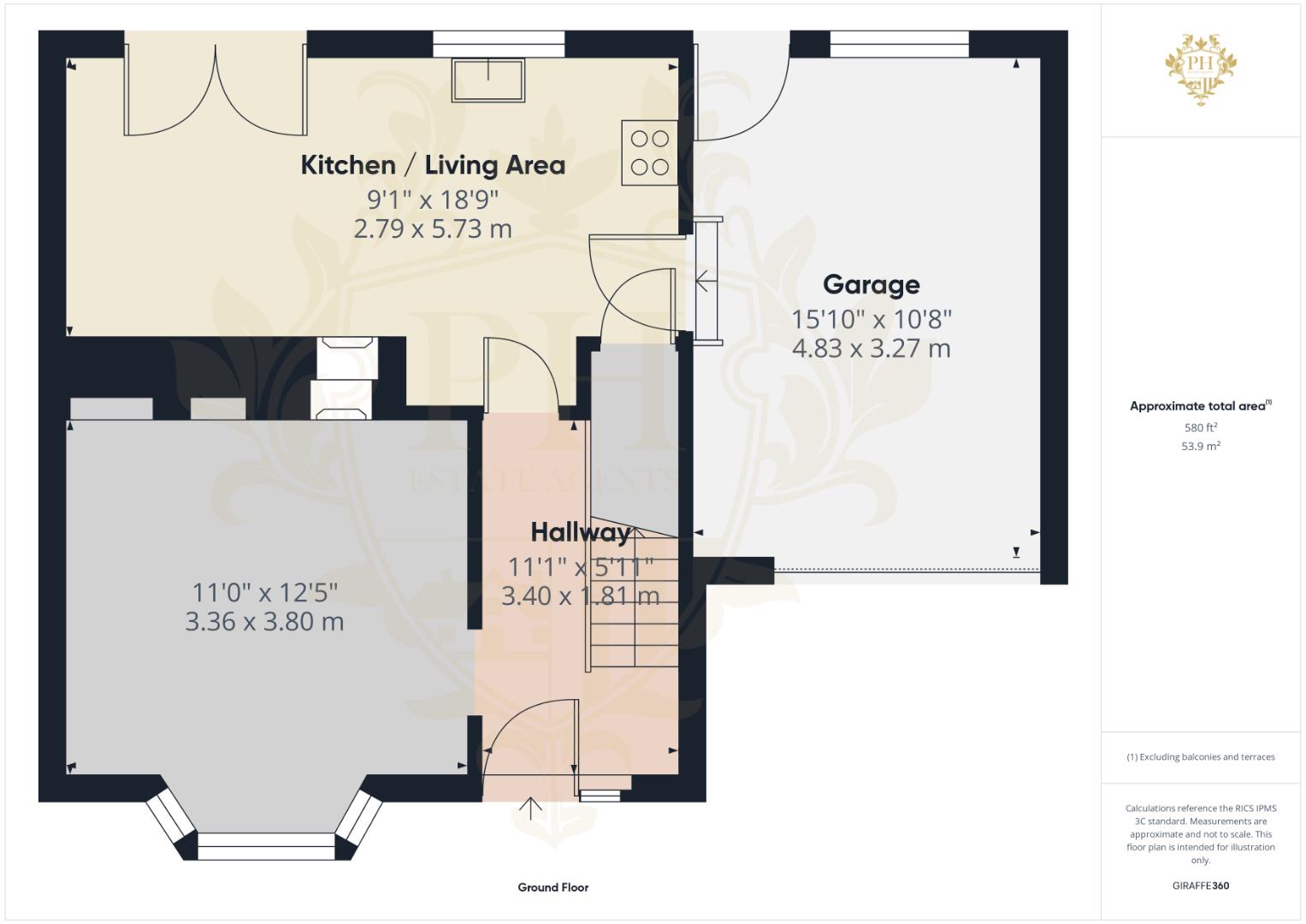 The hallway serves as a central passage, inviting you toward the reception room, the kitchen, and the staircase that leads to the first floor. A side-facing window lets in natural light, brightening the space and offering a glimpse of the outdoors as you walk through.