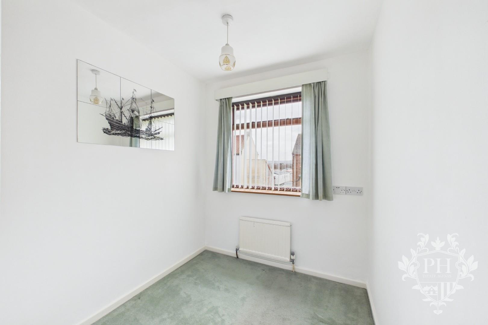 The third bedroom sits at the front of the house, catching the soft light that filters in through a well-sized window. Though compact, there’s room for a comfortable single bed and a selection of smaller storage pieces.